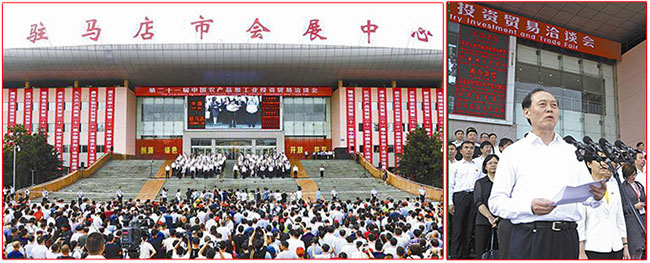 第二十一屆中國農產品加工業投資貿易洽談會開幕現場,農業農村部黨組副書記、副部長余欣榮(右圖)宣布第二十一屆中國農產品加工業投資貿易洽談會開幕。 時間推移,新舊交替,舊的總會走的,新的也總會到來!新一屆農洽會也已到來,第21屆中國農洽會于9月6日在河南省駐馬店市會展中心舉辦,20年來,中國農洽會已成為駐馬店市經濟社會發展中最亮麗的名片。星火