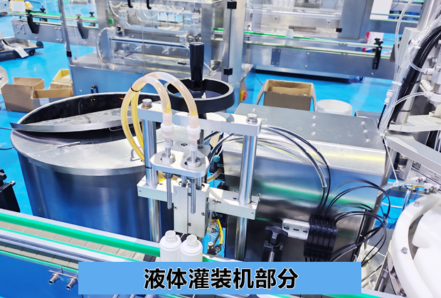 這是灌裝部分用到的設備,它負責把液體物料灌裝到每一個容器中,灌裝量根據自己的需求進行調整,10-300ml左右的可調范圍,滿足了多品種灌裝需求。