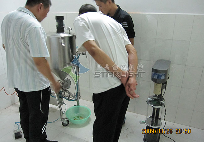 半自動辣椒醬灌裝機,可灌裝顆粒漿狀流體物料,主要用于麻辣醬、豆辨醬、鮮辣醬、香辣醬、牛肉醬、豆豉及郫縣豆醬等醬類灌裝,牛肉醬灌裝機是采用先進灌裝機技術的基礎上,進行改造和創新設計的產品,其結構簡單、精確度高、操作更加簡便, 是理想的顆粒漿狀粘度流體充填設備。