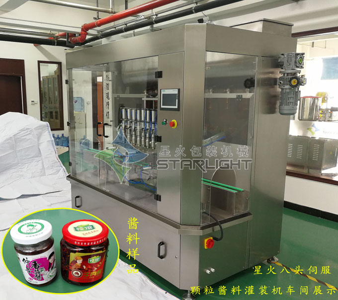 第96屆糖酒會上星火八頭伺服辣椒醬灌裝機的亮相: