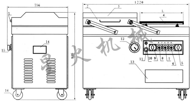 抽氣式食品真空包裝機外形結(jié)構(gòu)組成圖:
