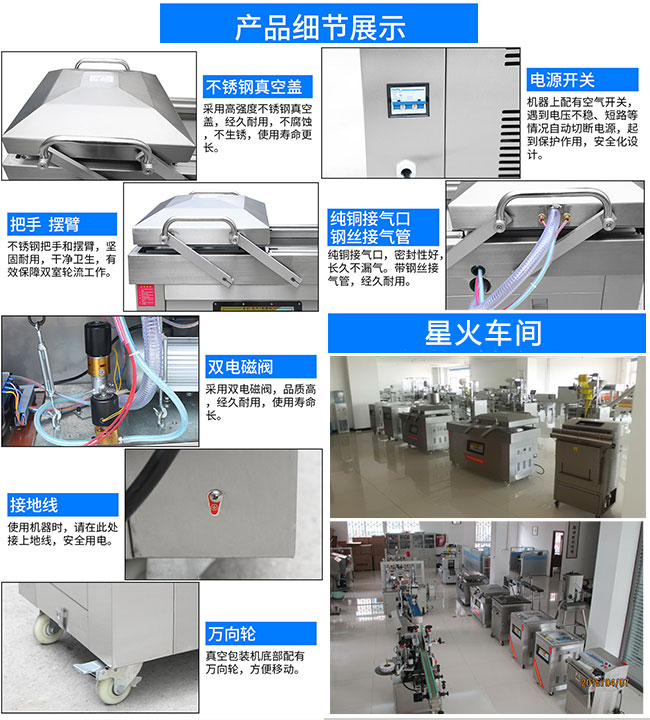 本系列真空包裝機具有抽真空、封口、印字、冷卻一次性完成之功能,適用于食品藥品、水產、化工原料、電子元件等產品的真空包裝,可防止產品的氧化霉變、防腐防潮,可保質、保鮮、延長產品的儲存期限。
