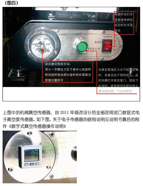 | 按產品工藝要求在機器面板真空表上設定正確的真空度值 |